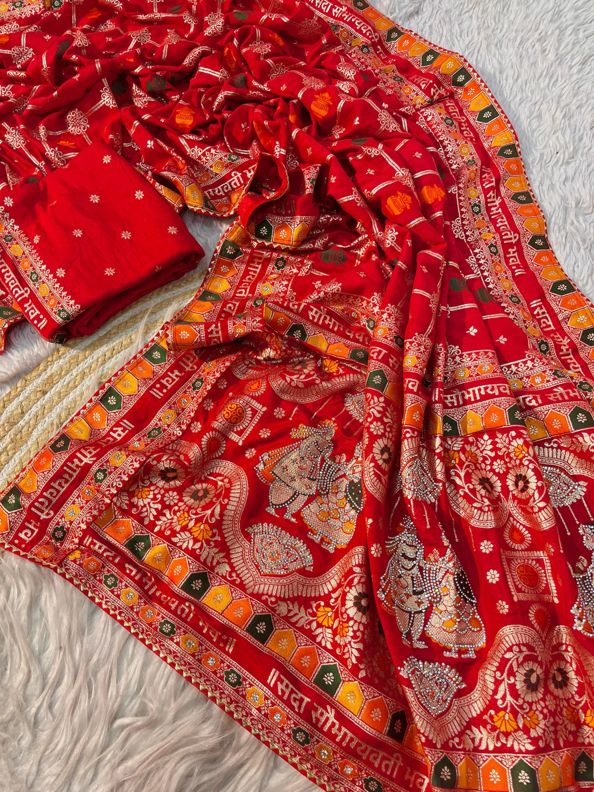 *Discover the enchanting of Sada Saubhagyavati Bhava saree with beautiful dola silk weaving meena with rich pallu zarkhan work with running blouse*