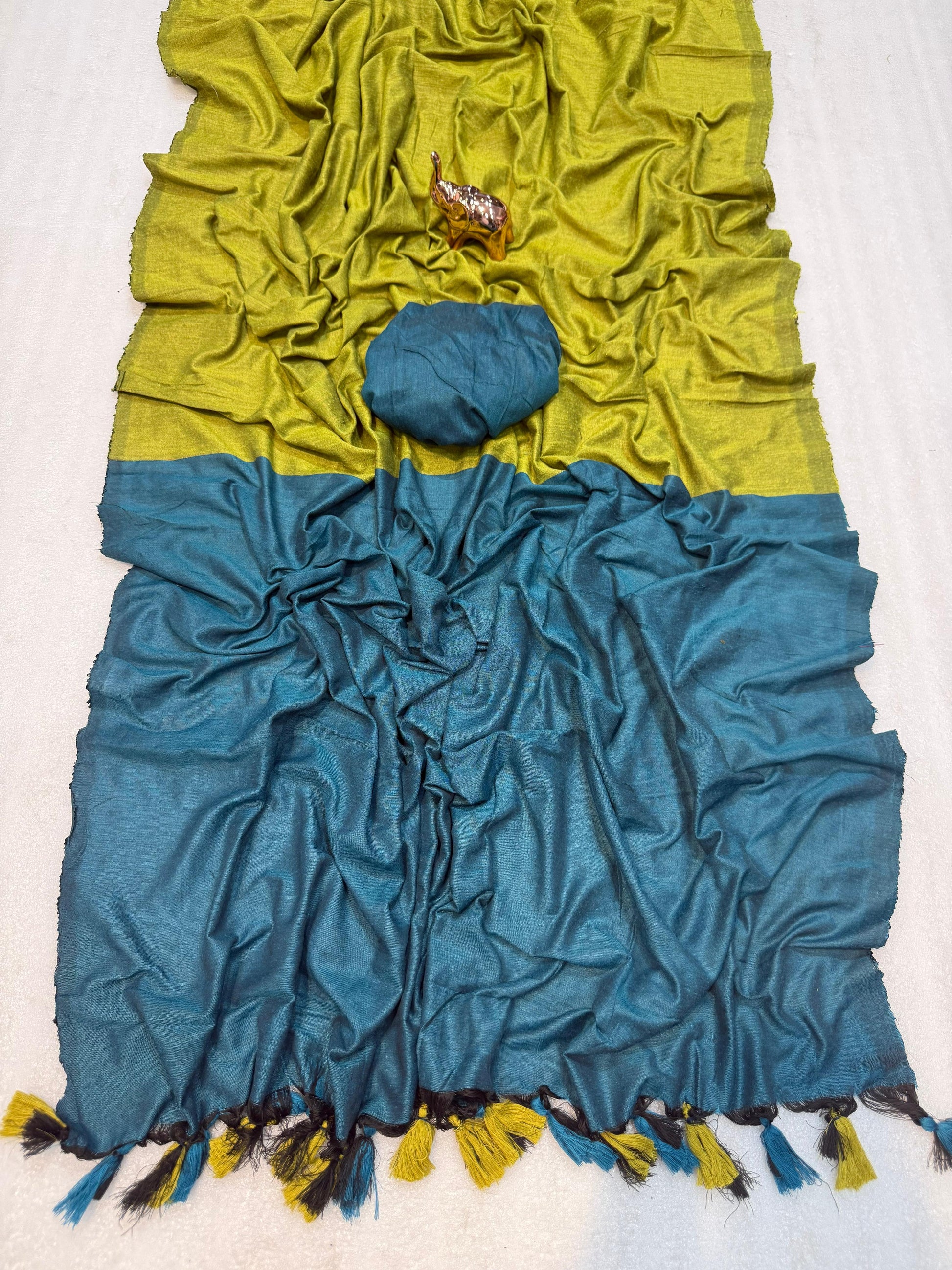 Fabric -  *Soft Original Mal Cotton Saree With Contrast Blouse And Pallu With Fancy Latkans,