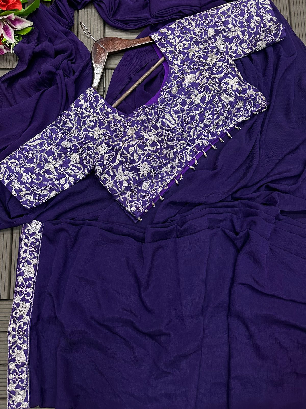 New Super Trending Embroidery cording work ready to wear saree with Embroidery Blouse