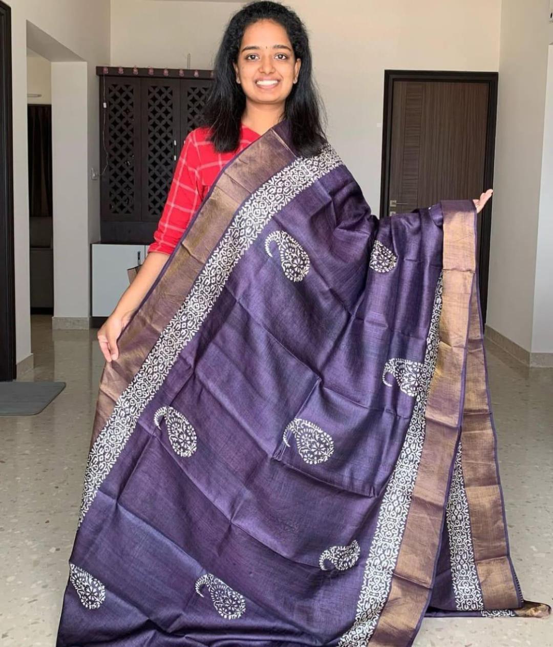 Beautiful soft tussar saree with all over kalamkari Leheriya print along with zari border